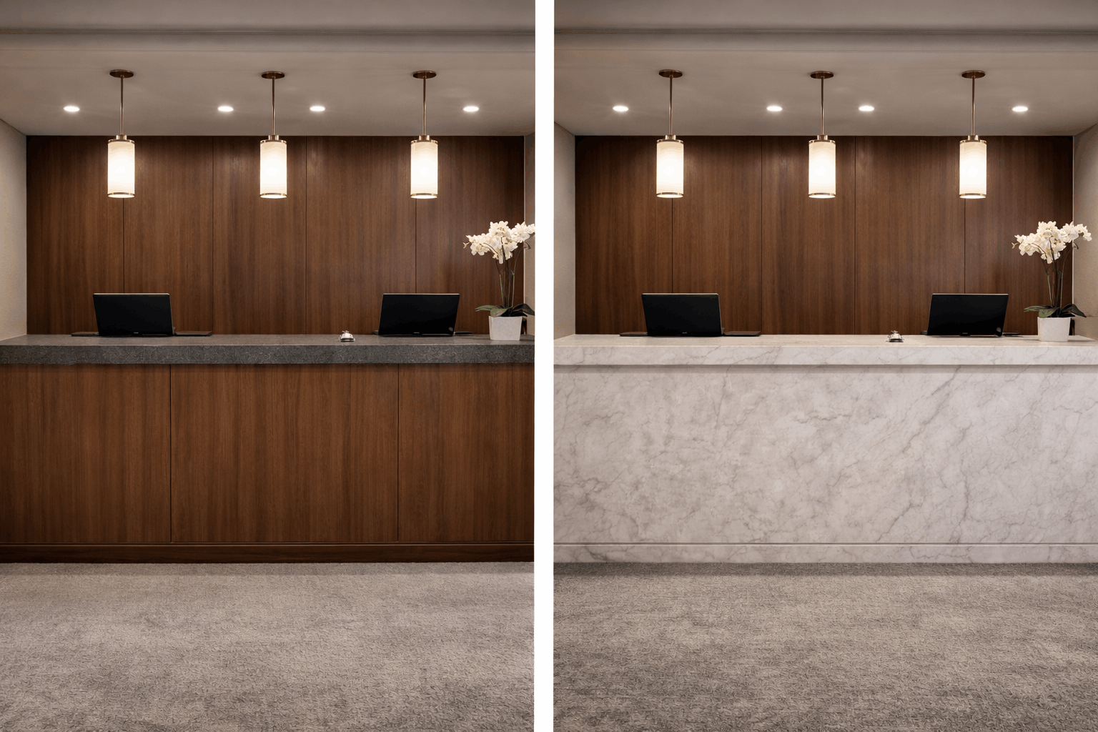 Because SOIF is applied directly to existing surfaces, it allows interiors to be refreshed without removing or replacing joinery, reducing cost, downtime and waste. The images here show how a wide variety of surfaces can be transformed using architectural film.